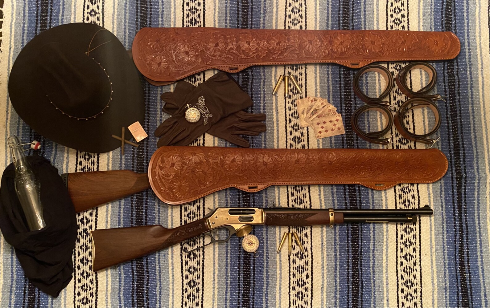 The photo below illustrates one of the best ways we have seen for displaying old west firearms and Chisholm’s Trail gun leather. CLICK ON PHOTO